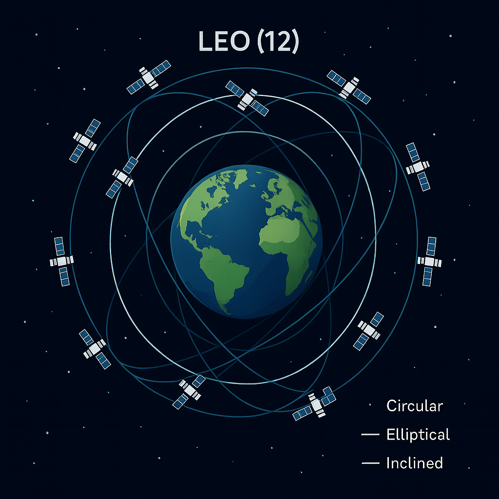 Orbit roles: LEO edge power, MEO relay, GEO baseload/orchestration